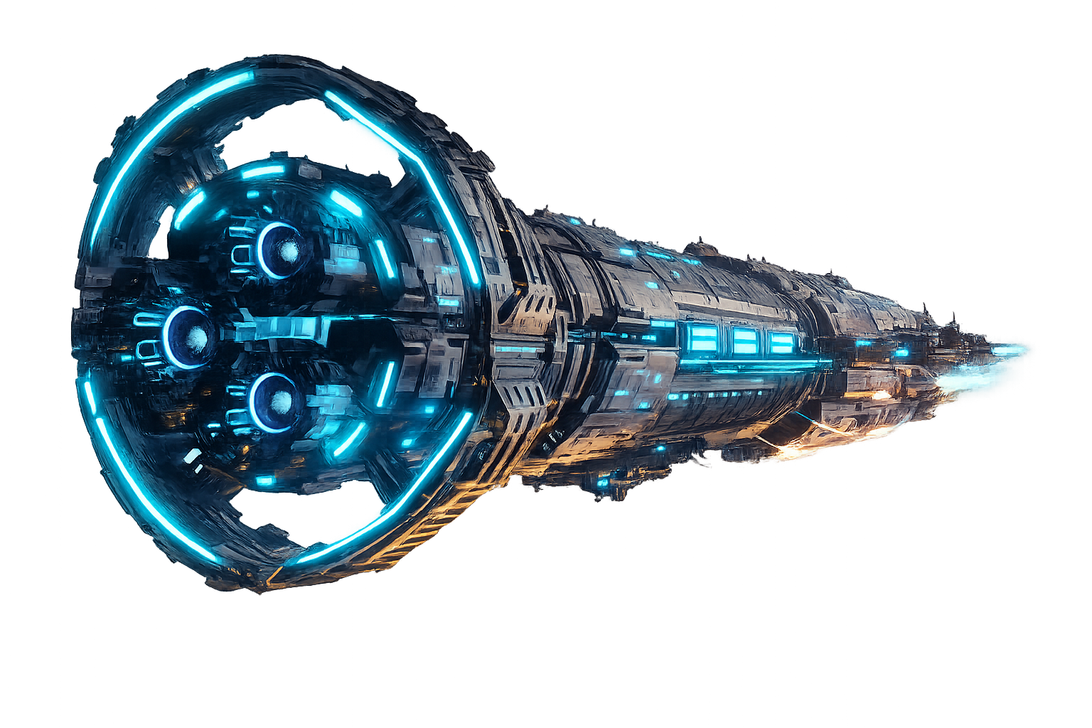 Unlike the rest of the station, the shipyard does not rotate, using zero gravity for starship construction. Employs hundreds of drones and robots capable of short-range spaceflight that can assemble a complete Tiny or Small starship in hours. Larger vessels like cruisers and battleships are built in sections inside and assembled outside. If attacked, these constructs can be repurposed as defensive weapons — literally unmaking enemy starships around them.
